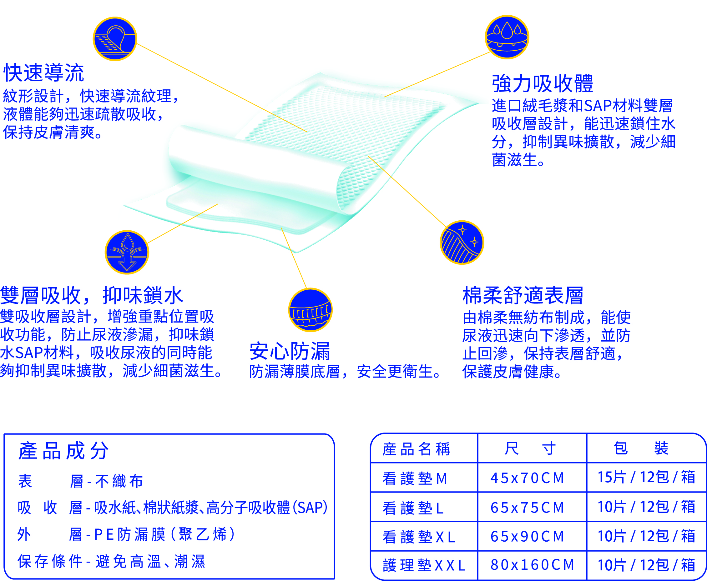 超大型床墊護理墊, 160 x 80 公分. 10片/12包/箱